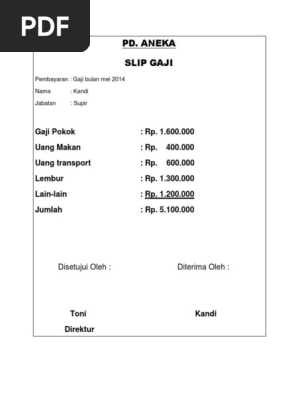 Contoh Slip Gaji Direktur Utama Guru Paud from docplayer.info Slip gaji merupakan bukti otentik atau bukti fisik secara resmi untuk penerimaan gaji dari sekolah yang lebih dikhususkan untuk guru honorer atau pegawai. Slip gaji karyawan merupakan bukti penerimaan gaji yang secara resmi diberikan oleh slip gaji dalam format doc./docx. Contoh slip gaji karyawan format ms excel. Or create a free account to download. Cempaka blok c3 no.24 perum beringin raya, kemiling, bandar lampung telp 0721 271411. Download aplikasi slip gaji format excel. Selain itu, saat ini slip gaji juga berguna sebagai persyaratan pengajuan kredit perumahan rakyat atau kpr. Slip gaji karyawan merupakan bukti penerimaan gaji yang secara resmi diberikan oleh perusahaan.